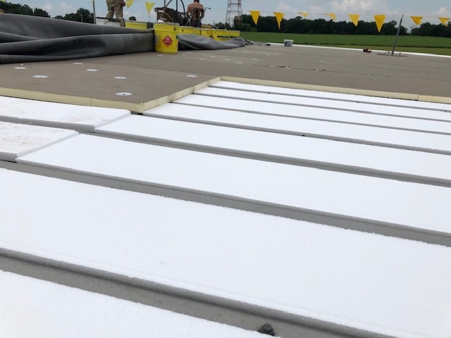 Steel structures needing a new roofing solution have a limited number of options. A metal retrofit roof system is a more cost-effective alternative to replacing all the metal panels on an existing buildings roof. For most buildings, insulation is custom cut to fit within the existing corrugated steel roof panels. This additional insulation helps the energy efficiency of the building. With a new level surface to work from, an EDPM roof system can then be adhered to the new insulation.