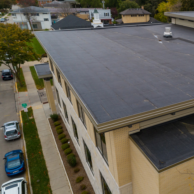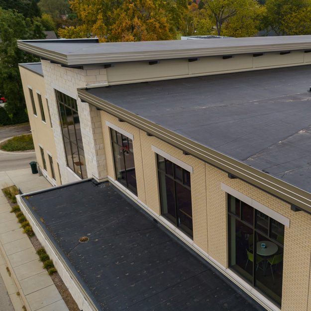 New Construction – Two story library with custom fabricated edge metal and flashing systems